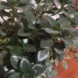 叶8-10枚,具长柄;叶片纸质,圆卵形或卵形,长0.7-2厘米,宽0.5-1.5厘米,顶端圆形或钝,基部浅心形或圆形,边缘有浅圆齿,上面被稍密短柔毛,下面密被白色短毛,侧脉每侧3-4条,不明显;叶柄长0.5-3.5厘米,与花序梗及花梗被开展短柔毛。