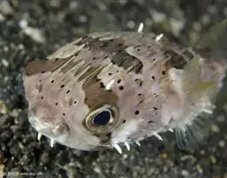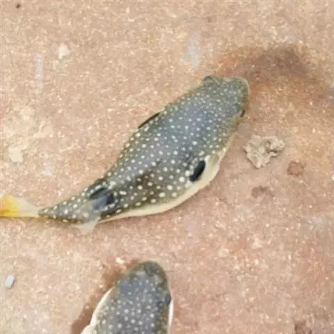暗色东方鲀(学名:Fugu obscurus),为鲀科、东方鲀属鱼类。体呈筒形,体表密生小刺鳞,体内有气囊,遇敌时将体表小刺鼓起以自卫。洄游性鱼类,生活于水体中层。肉嫩、味鲜。河豚内脏生殖腺和血液有剧毒。鱼越大,毒性越强,生殖期更毒。古有“舍命食河豚”之说。暗色东方鲀主要特征为背侧面具暗色横纹5~6条,暗色横纹常具小白斑。