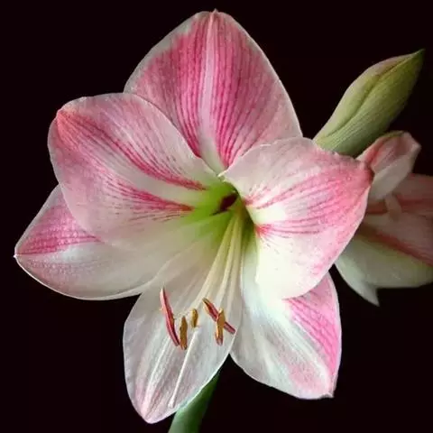 长筒石蒜草本,地生。鳞茎卵球形;叶披针形;伞形花序,有花5-7朵,花白色;花被裂片腹面稍有淡红色条纹,…