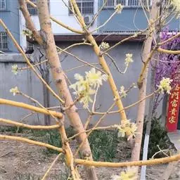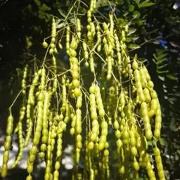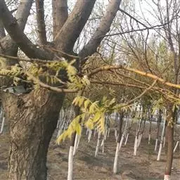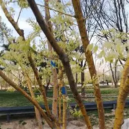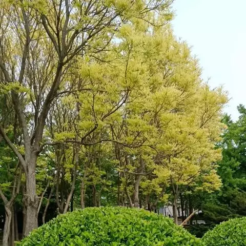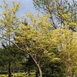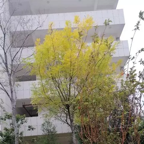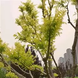 金枝国槐发芽早,幼芽及嫩叶淡黄色,5月上旬转绿黄,秋季9月后又转黄,每年11月至第二年5月,其枝干为金黄色,因此得名,是优良的绿化美化树种 。