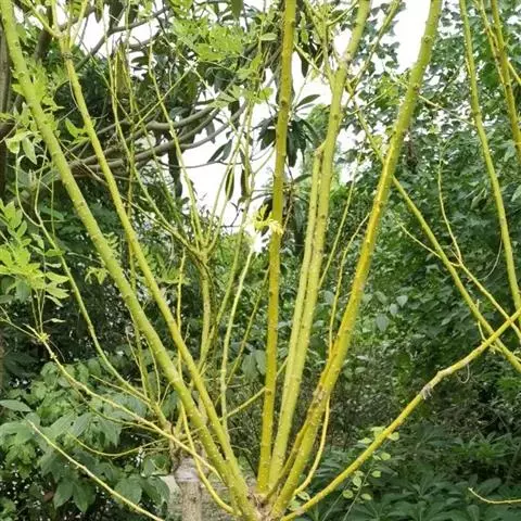 1.剪取黄金槐一年生枝条做接穗,除去复叶后备用,由于天气较热等原因,最好采取随嫁接随取接穗的方法,以免接穗采下时间过长,水分丧失多而降低成活率。