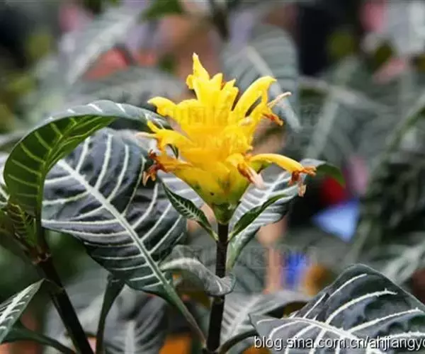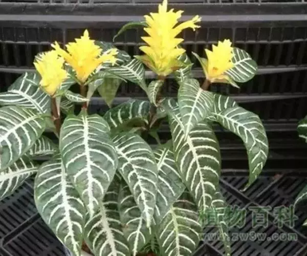 金脉单药花(学名:Aphelandra squarrosa Nees cv. Dania)多年生草本植物。叶对生,长椭圆形;全缘而微向内卷;深绿色,叶脉淡黄色或黄色。花为顶生穗状花序,黄色,花期夏秋季,花期长达2 个月。