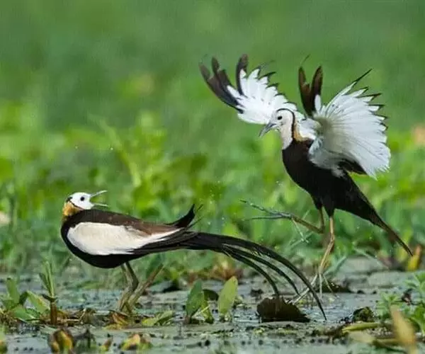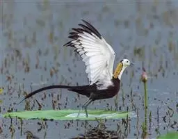 凤头麦鸡:中型涉禽,体长29-34厘米。头顶具细长而稍向前弯的黑色冠羽,像突出于头顶的角,甚为醒目。…