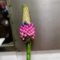 花魔芋(学名:Amorphophallus konjac K.Koch)是天南星科磨芋属植物,块茎扁球形,直径7.5-25厘米,顶部中央多少下凹,暗红褐色。叶柄长45-150厘米,基部粗3-5厘米。花序柄长50-70厘米,粗1.5-2厘米,色泽同叶柄。浆果球形或扁球形,成熟时黄绿色。花期4-6月,果8-9月成熟。