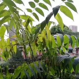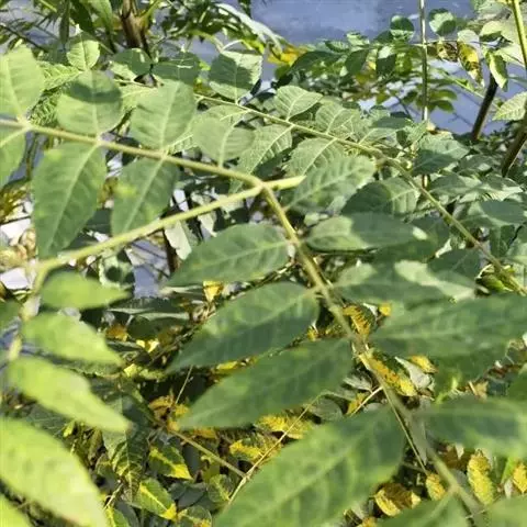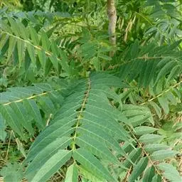 落叶乔木,高达10余米;树皮紫褐色,平滑,有灰色斑纹,全株有苦味。叶互生,奇数羽状复叶,长15-30厘米;小叶9-15,卵状披针形或广卵形,边缘具不整齐的粗锯齿,先端渐尖,基部楔形,除顶生叶外,其余小叶基部均不对称,叶面无毛,背面仅幼时沿中脉和侧脉有柔毛,后变无毛;落叶后留有明显的半圆形或圆形叶痕;托叶披针形,早落。