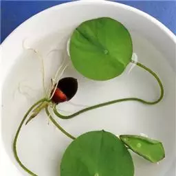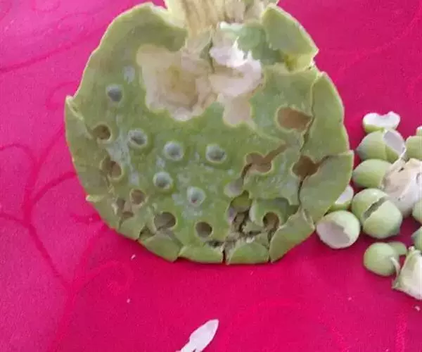 莲蓬(图2) 莲花是水生植物,性喜相对稳定的平静浅水,湖沼、泽地、池塘是其适生地。同时它对失水十分敏感,夏季只要3小时不灌水,缸栽荷叶便萎靡,若停水一日,则荷叶边焦,花蕾回枯。它还非常喜光,生育期需要全光照的环境。它极不耐荫,在半荫处生长就会表现出强烈的趋光性。