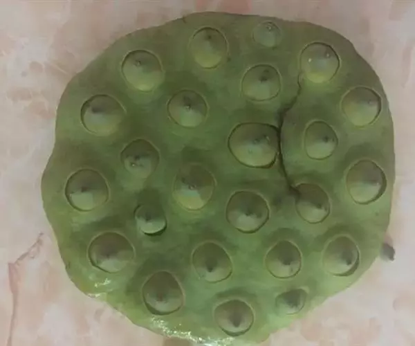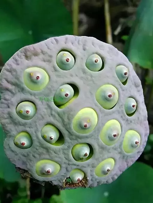 莲蓬又名:莲子肉;藕实;水芝丹;莲蓬子;莲实;蓬肉。莲的花托表面有多数散生蜂窝状孔洞,受精后逐渐膨大而称之为莲蓬。简单来说,莲花中心的果实就是莲蓬。莲蓬像一个碗。