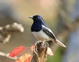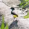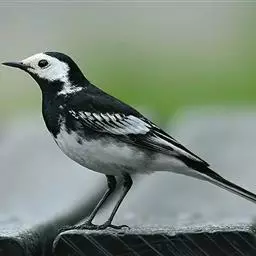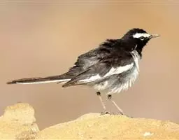 日本鹡鸰:体长约20厘米。上体多黑色,额、颏及眉纹白,下体白,两翼黑而具白色横斑及羽缘,…