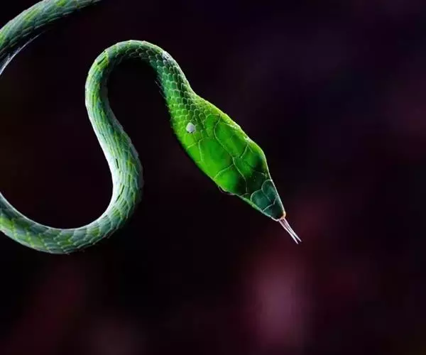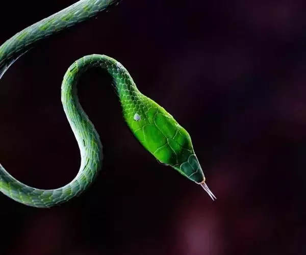 绿瘦蛇(学名:Ahaetulla prasina)是游蛇科,瘦蛇属轻毒性后沟牙毒蛇。体型极细而长,长可达1.5米。头较窄长,与颈区分极明显;吻端略圆而平扁,超出下领;眼大,瞳孔呈一横缝;颊区呈一凹槽;躯干瘦长侧扁,尾甚长而细。背面鲜绿色,腹面淡绿色,腹鳞及尾下鳞前段侧棱白色,呈二纵线纹。有4亚种。