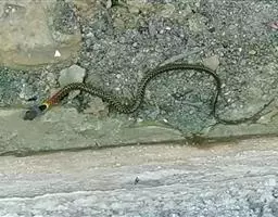 红脖颈槽蛇:游蛇科、颈槽蛇属的爬行动物。体型中等大小,全长约77-95厘米。头背草绿色,上唇鳞色稍浅,…