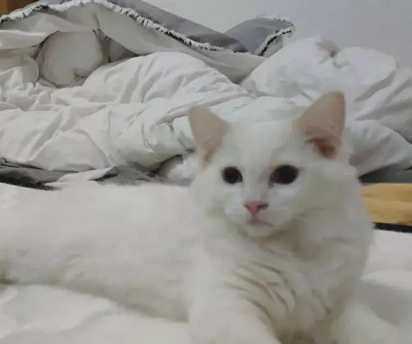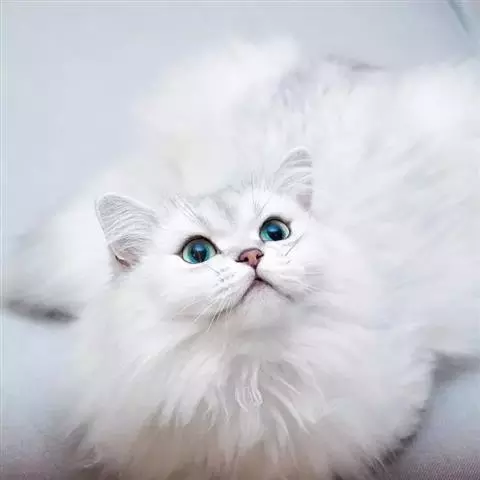 临清狮子猫-鸳鸯眼 毛长,大多为白色,也有花色毛。白猫的话,身上或纯白,或在尾巴、头顶有黑毛,其它部位没有。血统接近纯种的猫背毛不能少于5公分——所谓三寸余(旧制16寸)。带临清狮子猫血统的猫尾毛长度一定大于15公分,少于15公分则就是普通长毛猫,无论是否鸳鸯眼。