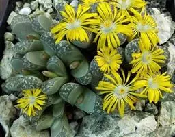 生石花,番杏科生石花属多年生肉质草本植物。植株几乎无茎;花朵较大,颜色艳丽,呈多边形,…