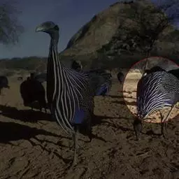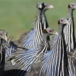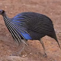 鹫珠鸡:是珠鸡科中体形最大的一种,因头颈部像兀鹫而得名。雌雄羽色相似,为黑色基底上遍布白色点斑,…