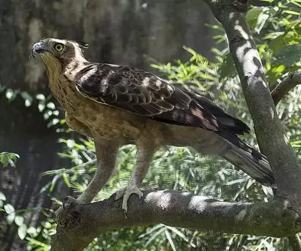 鹰雕(学名:Nisaetus nipalensis)为隼形目鹰科的鸟类,是一种体形偏大的猛禽,体长长66-84厘米,翼展134-175厘米,雌鸟体重3500克,雄鸟体重2500克。成年鹰雕的上半身呈棕色,下体有白色纹。翅膀很宽,在飞行时呈V型,未成熟的鹰雕通常拥有白色的头。