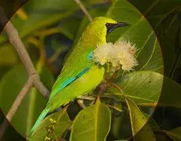 • 蓝翅叶鹎:小型鸟类,体长15-18厘米。雄鸟通体草绿色,尾蓝绿色,肩和翅亮蓝 色,胸缀有黄色,…