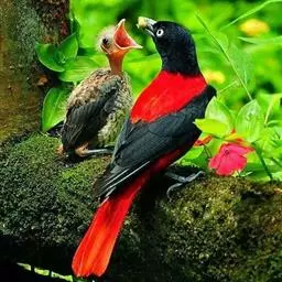 本种特有的高音似啄木鸟的kich叫声,也发出黄鹂特有的笛音。