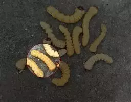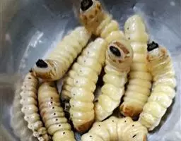 斗米虫为锈色粒肩天牛的幼虫,锈色粒肩天牛主要危害槐树Sophora japonica,…