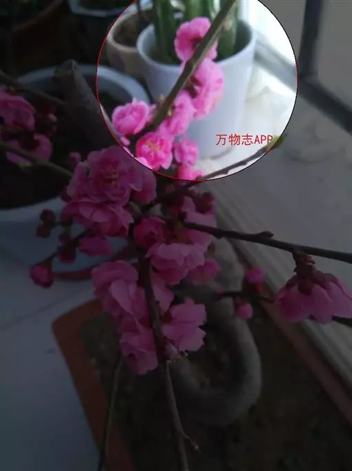 枝紫褐色,叶宽椭圆形至倒卵形,先端3裂状,缘有不等的粗重锯齿;花单瓣至重瓣,紫红色,1~2朵生于叶腋,花期4月;核果红色,近球形,有毛。