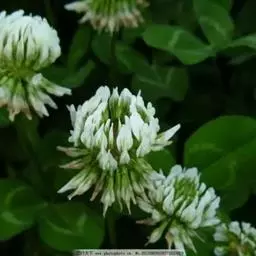 白车轴草,豆科车轴草属的多年生草本植物,茎贴地匍匐;叶柄直立,小叶心形,边缘具细齿,叶脉明显,…