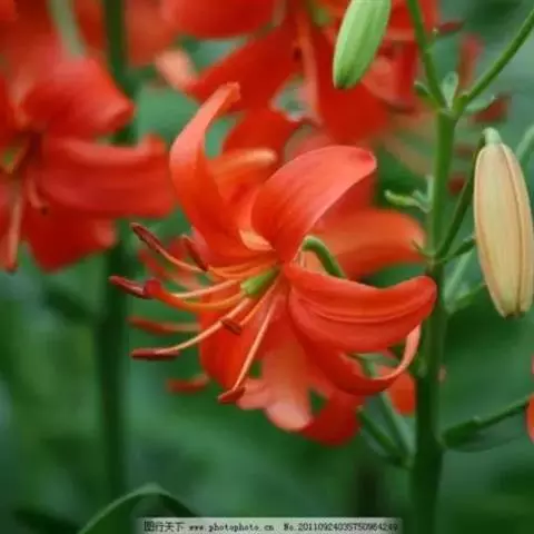 狐尾百合,百合科百合属植物,多年生球根草本花卉,茎直立,不分枝,地下具鳞茎,鳞茎由阔卵形或披针形。…