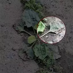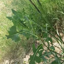 基生叶及下部茎叶长椭圆形或宽卵形,长10-30厘米,宽4-15厘米,基部渐狭成短柄,中部叶及上部茎叶渐小,长椭圆形或倒披针形,无柄。全部叶边缘有稀疏的大小不等的三角形刺齿,齿顶有黄褐色针刺,或羽状浅裂,两面无毛或两面被薄蛛丝毛或两面灰白色,被厚棉毛。茎翅2-5厘米,羽状半裂或三角形刺齿,裂片宽三角形,裂顶及齿顶有黄褐色针刺,针刺长达5毫米。