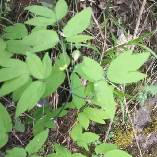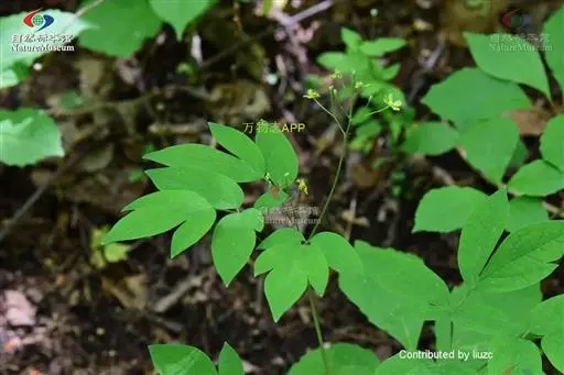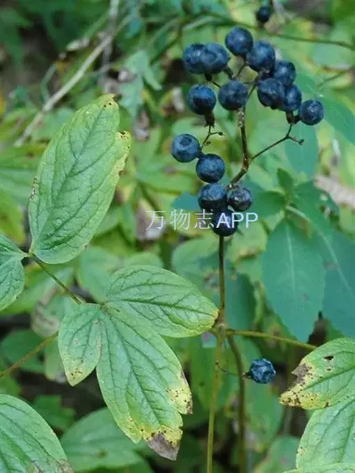 红毛七,又名类叶牡丹、红毛三七。多年生草本,高40-70cm。根茎粗壮,具不明显的节,须根多数,密生,红褐色。叶互生,着生于茎顶端,为二至三回羽状复叶;一回和二回小叶柄分别长10-25cm和2-8cm,三回侧生小叶近无柄,顶生小叶柄长1-5cm;小叶片卵形或椭圆状披针形,长3.5-9cm,宽1.4-5cm,先端渐尖,基部宽楔形,全缘或有时2-3裂,两侧通常不对称,上面绿色,下面灰白色。短圆锥花序顶生,小花梗细长,基部有卵状披针形小苞片;花黄色,小形,直径约1cm;萼片6,花瓣状;花瓣6,退化或线形;雄蕊6,花药先端2瓣裂;雌蕊1,子房1室,内含2胚珠,花柱短,柱头侧生。蒴果极易开裂,露出2个种子呈果实状。种子球形,成熟后蓝黑色,外面微被白粉。花期4-6月,果期7-8月。