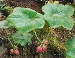 多年生草本,有匍匐状、粗厚、具节的根茎;根生叶1枚,大,盾状,分裂,生于粗厚的柄上其状如伞,花茎亦…
