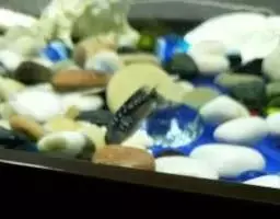 饲养人字蝶不是很麻烦,一般情况下我们从市场上得到的个体在被放到水族箱内后很容易适应新环境。它们吃鱼肉、虾肉、冷冻丰年虾和所有动物性饵料,但很难接受人工饲料。如果你运气好,也许它会吃一些薄片饲料,但对颗粒饲料的接受能力非常有限。