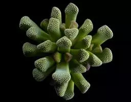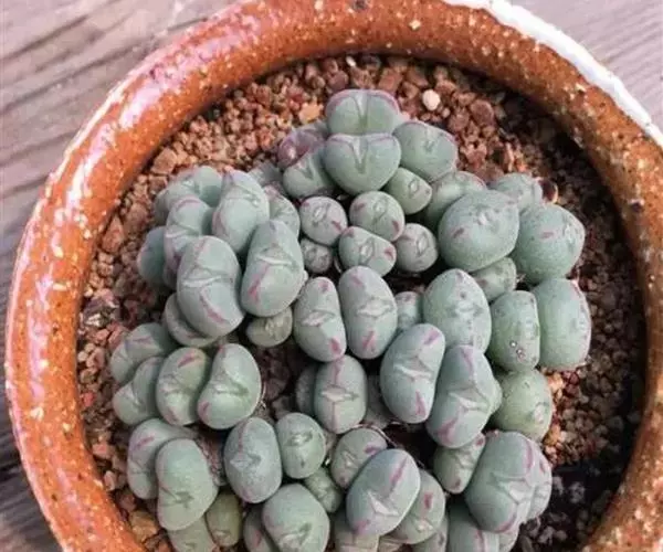 口笛是番杏科肉锥花属少将的亚种,原产于南非开普省小纳马夸兰地区。 植株易群生,肉质叶元宝状,夏季休眠,秋季开黄色花。
