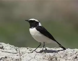 雄性成鸟:头顶至尾上覆羽黑色,略带蓝色金属光泽;飞羽和大覆羽黑褐色,内侧次级飞羽外翈大部和次级覆羽均为白色,构成明显的白色翼斑,其他覆羽与背部同色;中央两对尾羽全黑,外侧第4对尾羽仅内翈边缘黑色,余部均白,其余尾羽都为白色;从颏到上胸部分及脸侧均与头顶同色;下胸至尾下覆羽纯白。