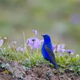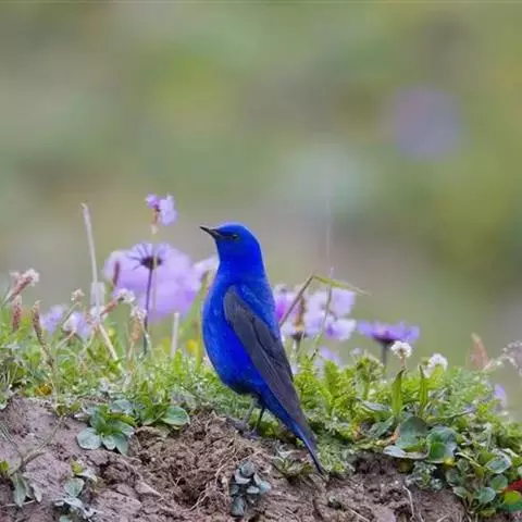 蓝大翅鸲是鹟科、大翅鸲属小型鸟类,体长19-21厘米。两翅尖长。雄鸟通体鲜紫蓝色具金属光泽。…