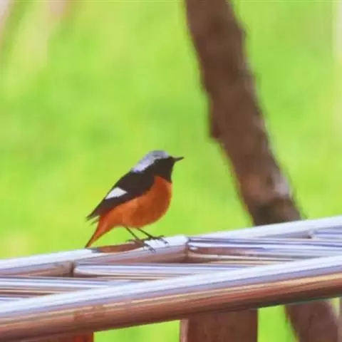 蓝额红尾鸲体长14-16厘米。雄鸟夏羽前额和一短眉纹辉蓝色,…