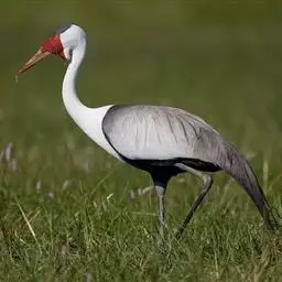 雌性成鸟:与雄鸟相似,但雌鸟以灰色或褐色替代了雄鸟的黑色部分;飞羽和尾羽的黑色较雄鸟浅淡;下体及尾下覆羽的白色略沾棕色。