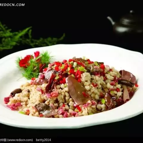 辅料:鸡丁50克、瘦猪肉100克、虾仁50克、熟火腿丁30克、猪油400克、香菇丁20克、鲜荷叶4张、酒坛泥3000克。