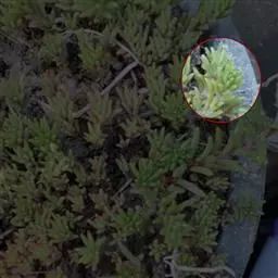 薄雪万年草别名矶小松,景天科景天属多年生草本植物,其细小的蓝绿色棒状叶片环绕生长于茎端,…
