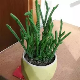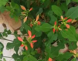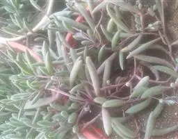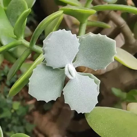 叶子表面宽厚,富肉质感且带有磨纱质感,看像石头质地;开红色小花,生于植株顶部,倒伞形密生,形状像花…