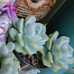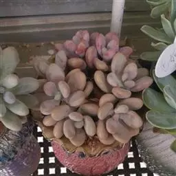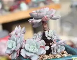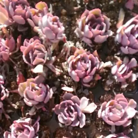 紫珍珠是景天科石莲花属的多年生肉质草本植物。植株中小型;叶片肉质,匙形,呈莲座状紧密排列;叶片粉紫色,…