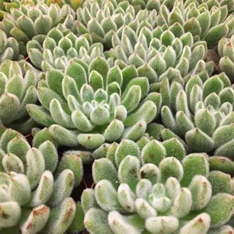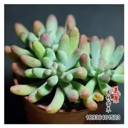蓝黛莲是一种景天科厚叶草属植物。叶片呈略扁的圆柱形,排列成莲座状;颜色为灰绿色,…