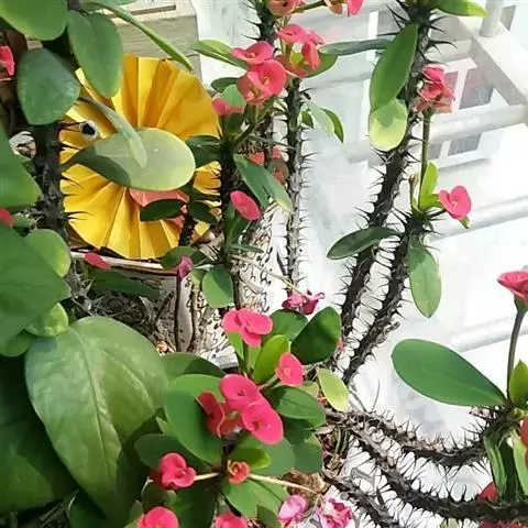 铁海棠为大戟科大戟属蔓生灌木植物;茎多分枝,具纵棱,呈旋转状;叶互生,…