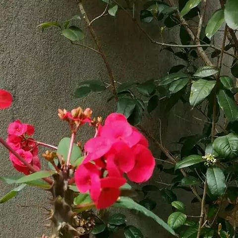 虎刺梅:别称铁海棠,是蔓生灌木植物。茎多分枝,长60-100厘米,直径5-10毫米,具纵棱,密生硬…