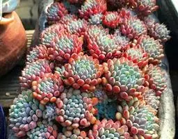 女雏是景天科石莲花属的多肉植物。特征是小巧的株形和橙粉色叶缘。极易生侧芽,…