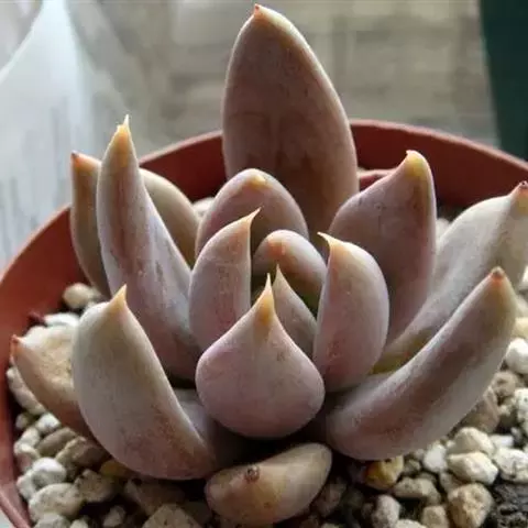 小红衣是景天科、拟石莲花属的一种多肉植物。叶片匙形,扁平细长,叶表具白粉,有明显的半透明边缘,…