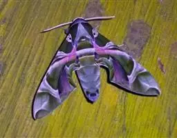 夹竹桃天蛾是鳞翅目天蛾科昆虫。又称夹竹桃白腰天蛾、巴纹天蛾。成虫呈青黑色,四翅正反面都以橄榄色为主调,…