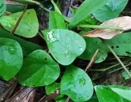 2、头花千金藤:S.cepharanthaHayataexyamamoto又称金钱吊乌龟,藤木,块根肥厚,长椭圆形,外皮暗褐色。茎基部木化,带紫色。叶互生、柄细长;叶片盾状着生,三角状圆形,长宽近等,全缘,上面深绿色,下面灰白色。花雌雄异株,头状聚伞花序腋生。核果球形,熟时紫红色,根入药,称白药子。