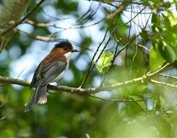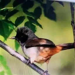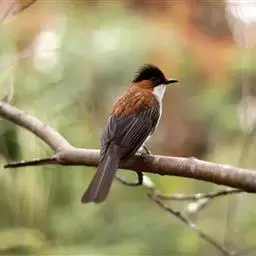 栗背短脚鹎,体长18-22厘米。上体栗褐,头顶和羽冠黑色。背栗色、翅和尾暗褐色具白色或灰白色羽缘。…