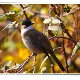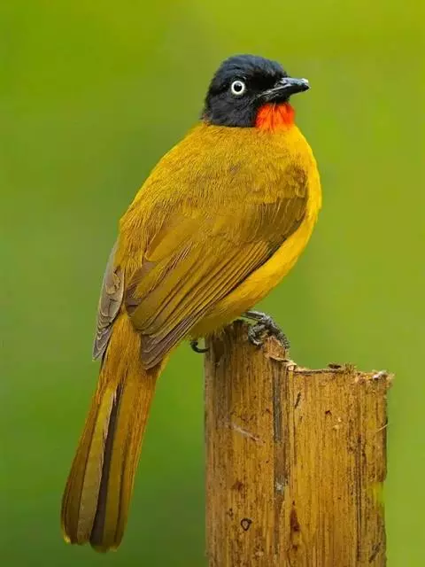 黑头鹎:体长17厘米。是一种中等体型的偏黄色鹎。特征为头辉黑、喉黑而眼蓝。上体黄橄榄色;两翼及尾偏黑,…