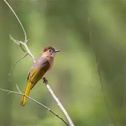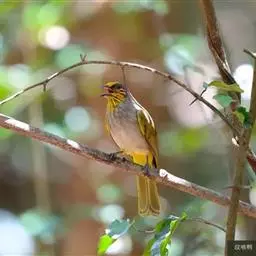 纹喉鹎:体长19厘米,是一种中等体型的偏绿色鹎。特征为头顶、脸颊、颏及喉均具黄色条纹。上体橄榄绿色。…