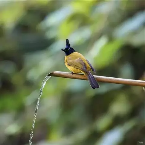 黑冠黄鹎:体长18-21厘米,是一种中等体型偏黄色鹎。整个头、颈、颏、喉黑色,头顶有显著直立的羽冠,…