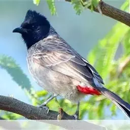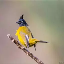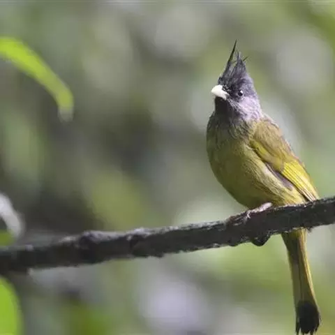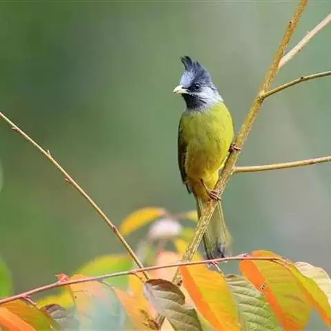 凤头雀嘴鹎:属小型鸟类,体长18-22厘米。嘴粗短、呈象牙色或乳黄色,前额和脸灰色,头顶黑色,…