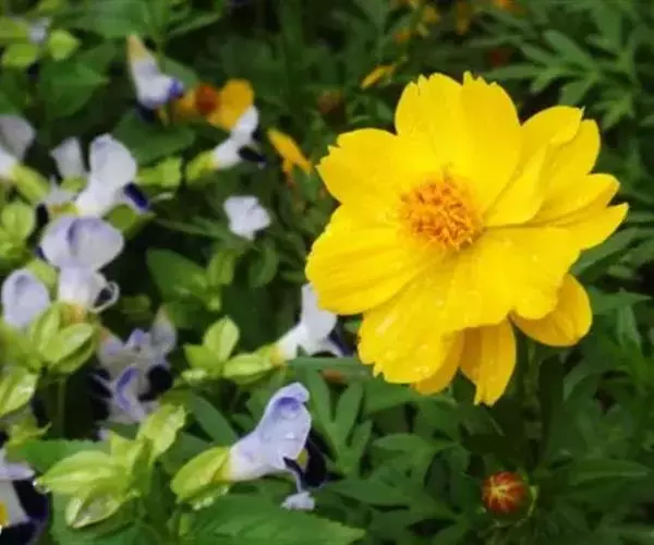 硫华菊喜阳光充足,不耐寒。多分枝,叶为对生的二回羽状复叶,深裂,裂片呈披针形,有短尖,叶缘粗糙,与大波斯菊相比叶片更宽。春播花期6-8月,夏播花期9-10月。